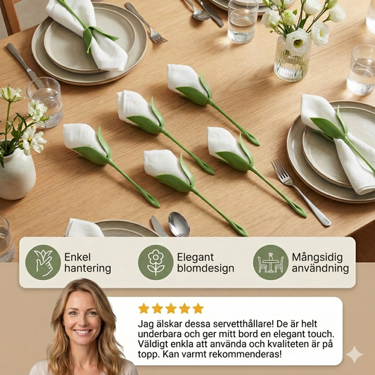 6-Pack Servettringar med Blommönster – Lyxig Bordsdekoration för Elegant Dukning