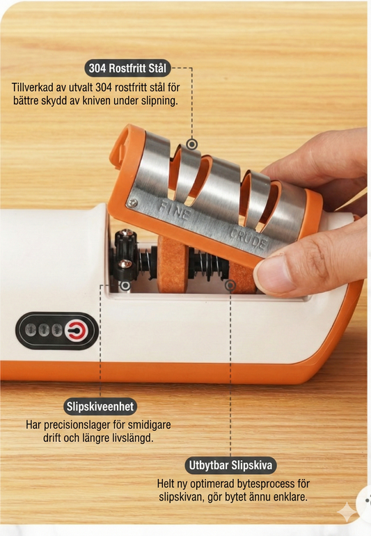 Elektrisk Knivslip (Uppladdningsbar) – Automatisk Slipmaskin för Köksknivar – Vassa knivar på sekunder