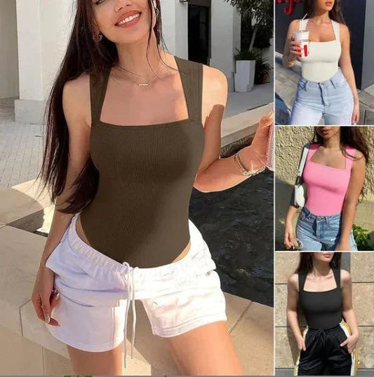 ScandiSculpt™Ribbad Body för Dam med Fyrkantig Ringning – Shapewear Bodysuit som Håller in Magen