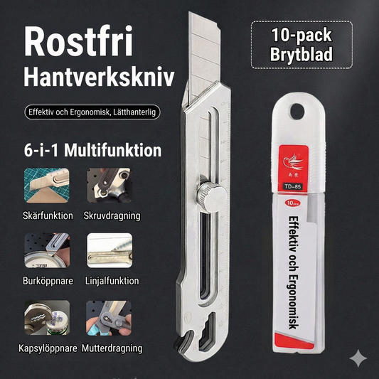 Premium Rostfri Brytkniv – Japanskt Stål & 6 Smarta Verktyg i ett