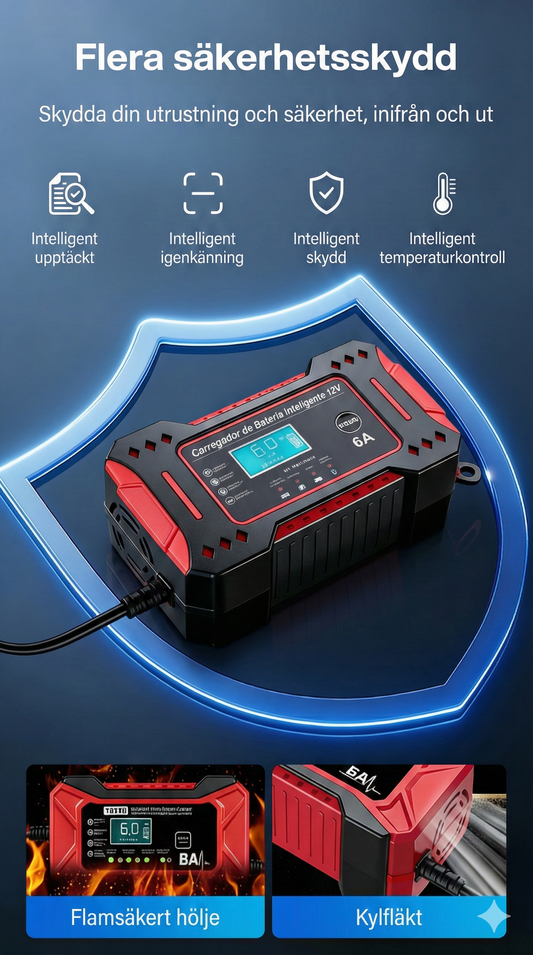 Smart Batteriladdare 12V (Bil & MC) – Helautomatisk Underhållsladdare med Reparationsläge