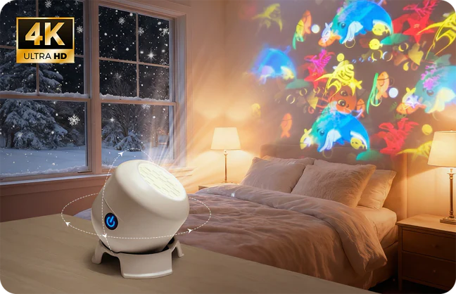 Låt dig uppslukas av fascinerande havsmotiv som fungerar som en naturlig stämningshöjare. De mjuka, rörliga vågorna erbjuder en meditativ och djupt avslappnande upplevelse för både vuxna och barn. Perfekt för att varva ner efter en lång dag eller för att skapa en trygg och lugnande miljö vid nattningen.