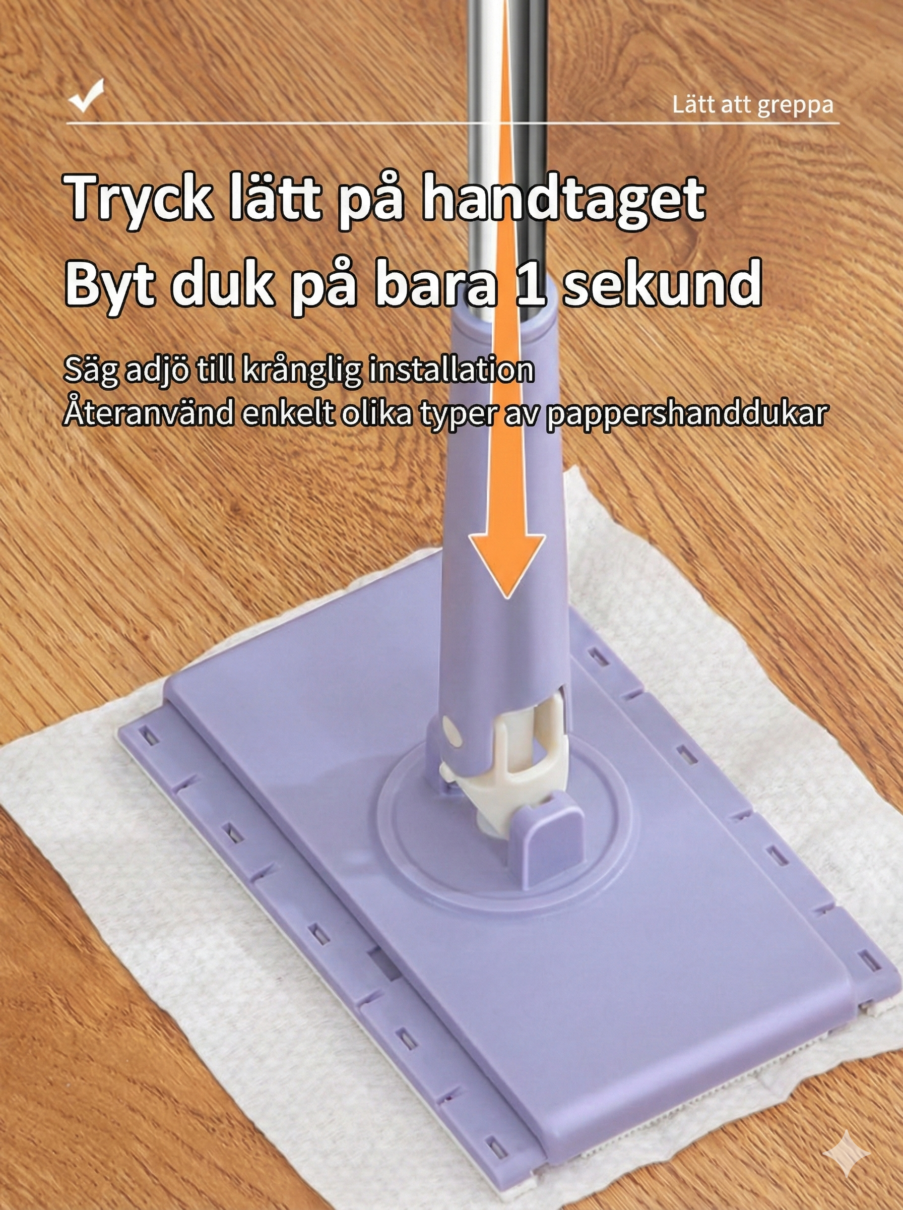 Smidig städning med smart klämmekanism Gör golvstädningen snabbare och mer ergonomisk med ClipMop™. Denna innovativa mopp är utrustad med en inbyggd automatisk klämmekanism som låter dig fixera moppduken med ett enkelt tryck. Detta innebär att du slipper böja dig ner eller krångla med manuella fästen, vilket sparar både rygg och tid. Duken sitter stadigt på plats under hela städningen, vilket ger en smidig och effektiv upplevelse varje gång.