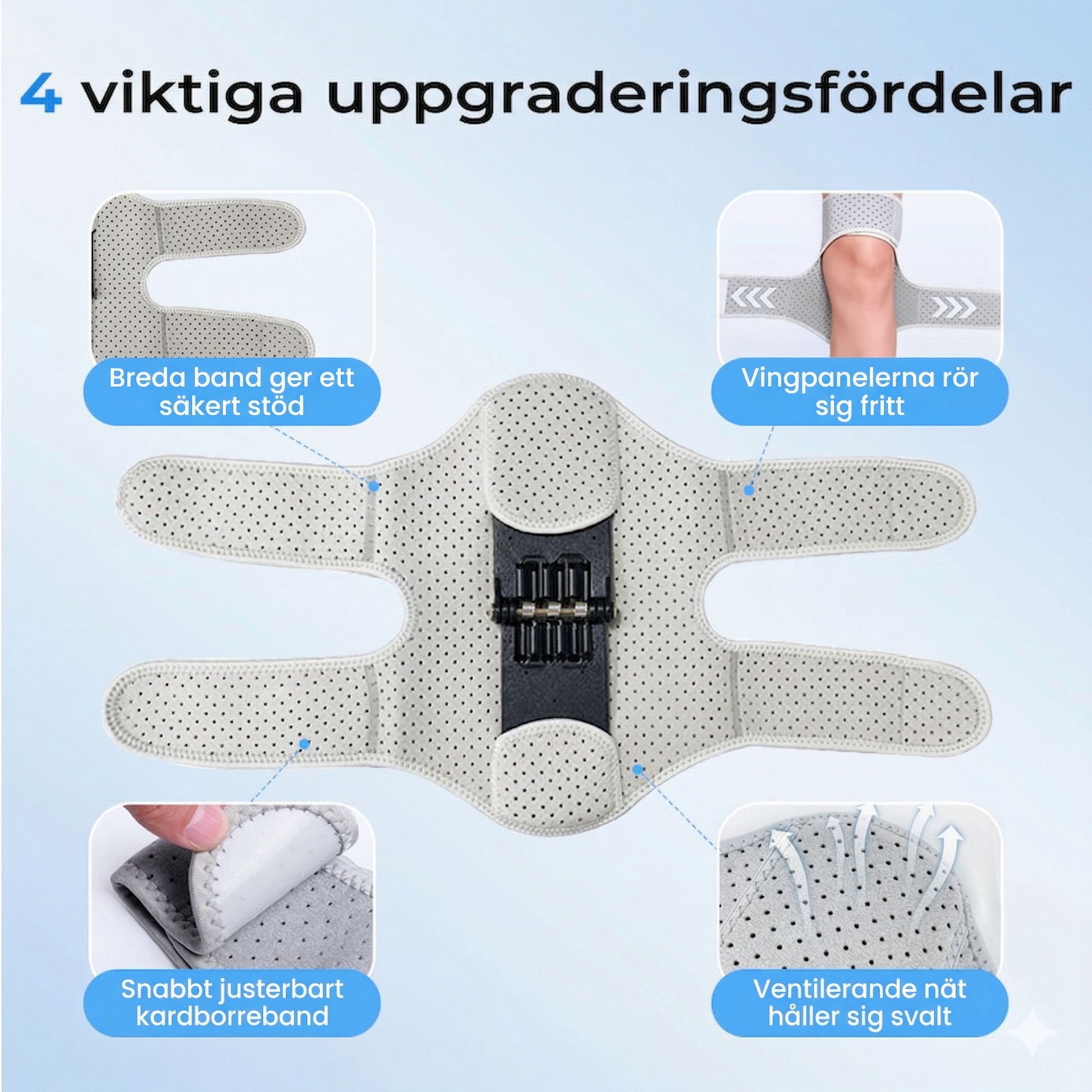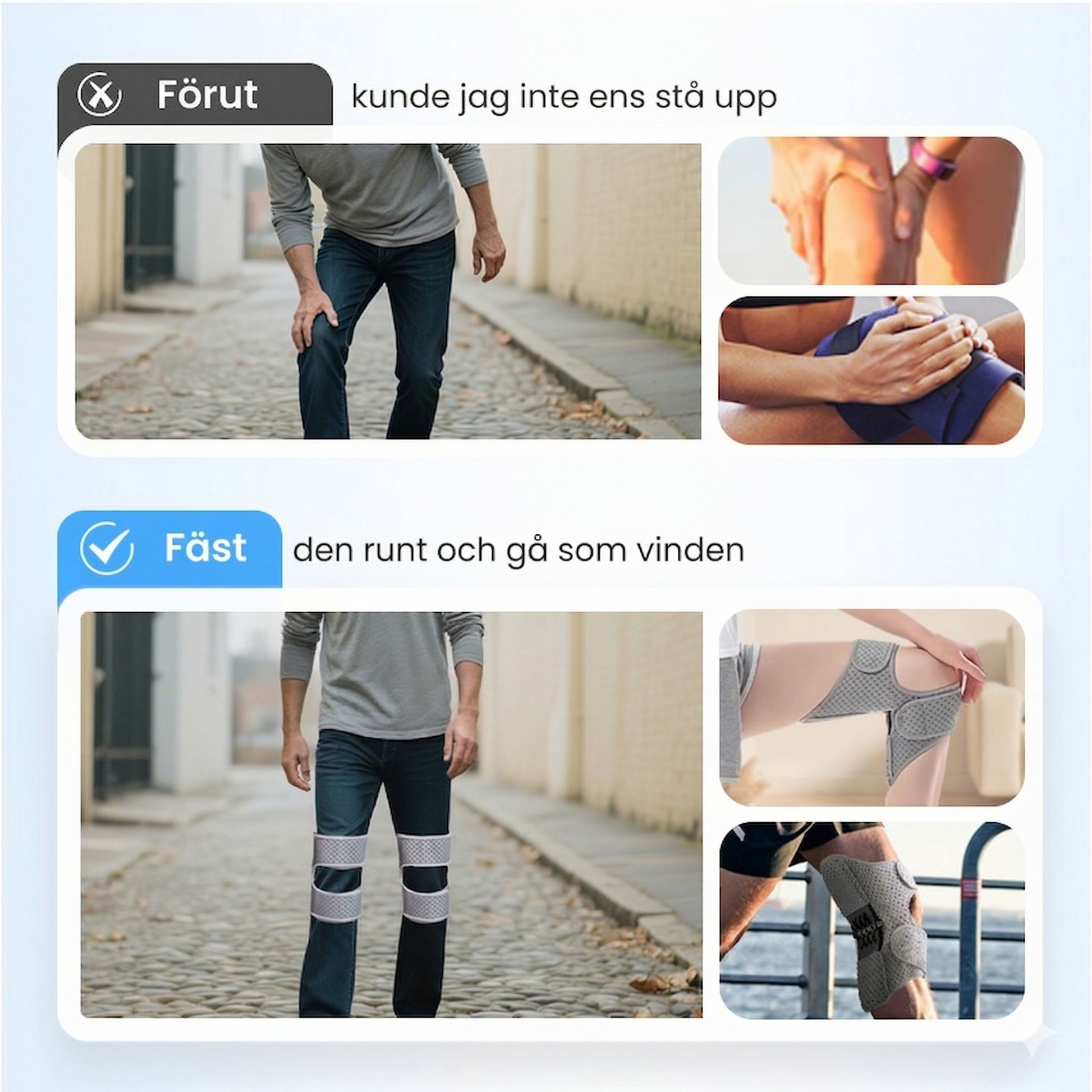 Låt inte knäsmärta stoppa dig från att göra det du älskar. Detta är det perfekta hjälpmedlet oavsett om du ägnar dig åt intensiv löpning, långa vandringar, tuffa träningspass på gymmet eller bara vill ha extra trygghet under vardagliga sysslor. Det fungerar även utmärkt som ett pålitligt stöd under knäåterhämtning.