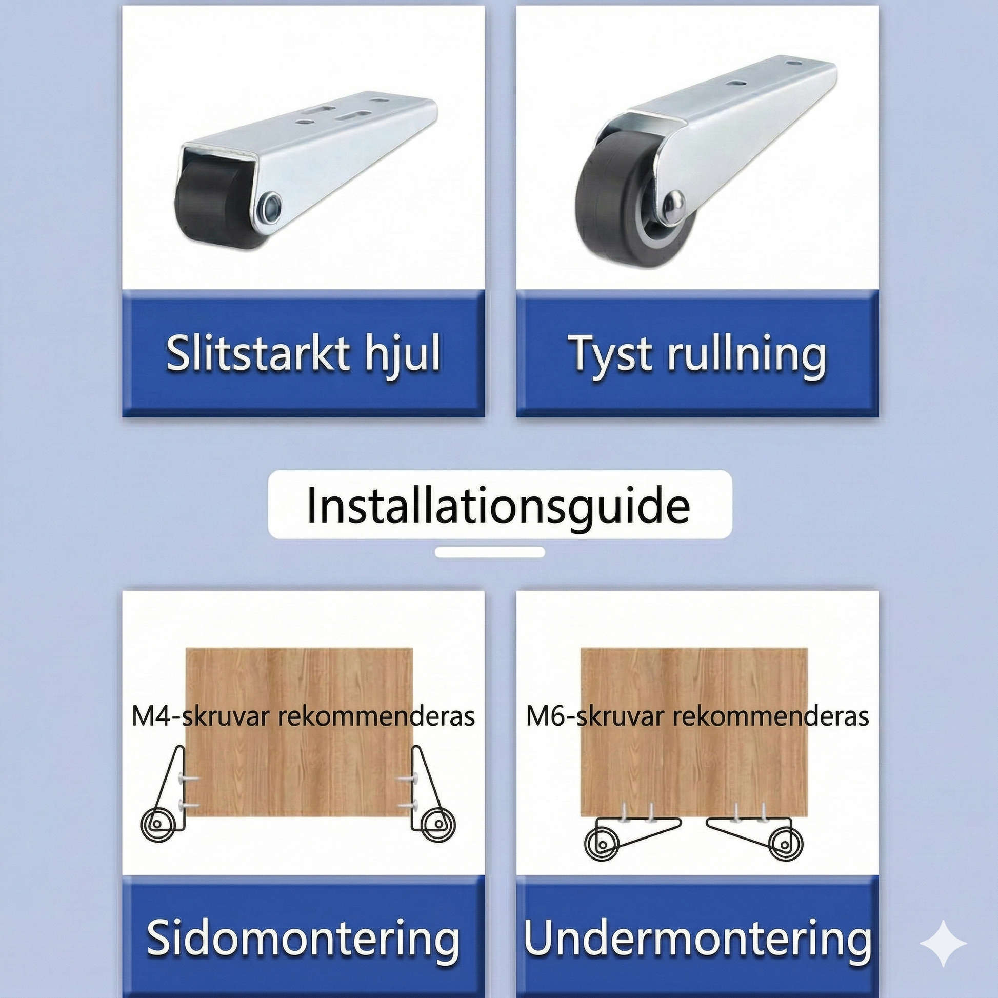 Förberedelse: För att säkerställa hjulets prestanda och livslängd, se till att monteringsytan är helt ren, plan och anpassad för installationen innan du fäster det.