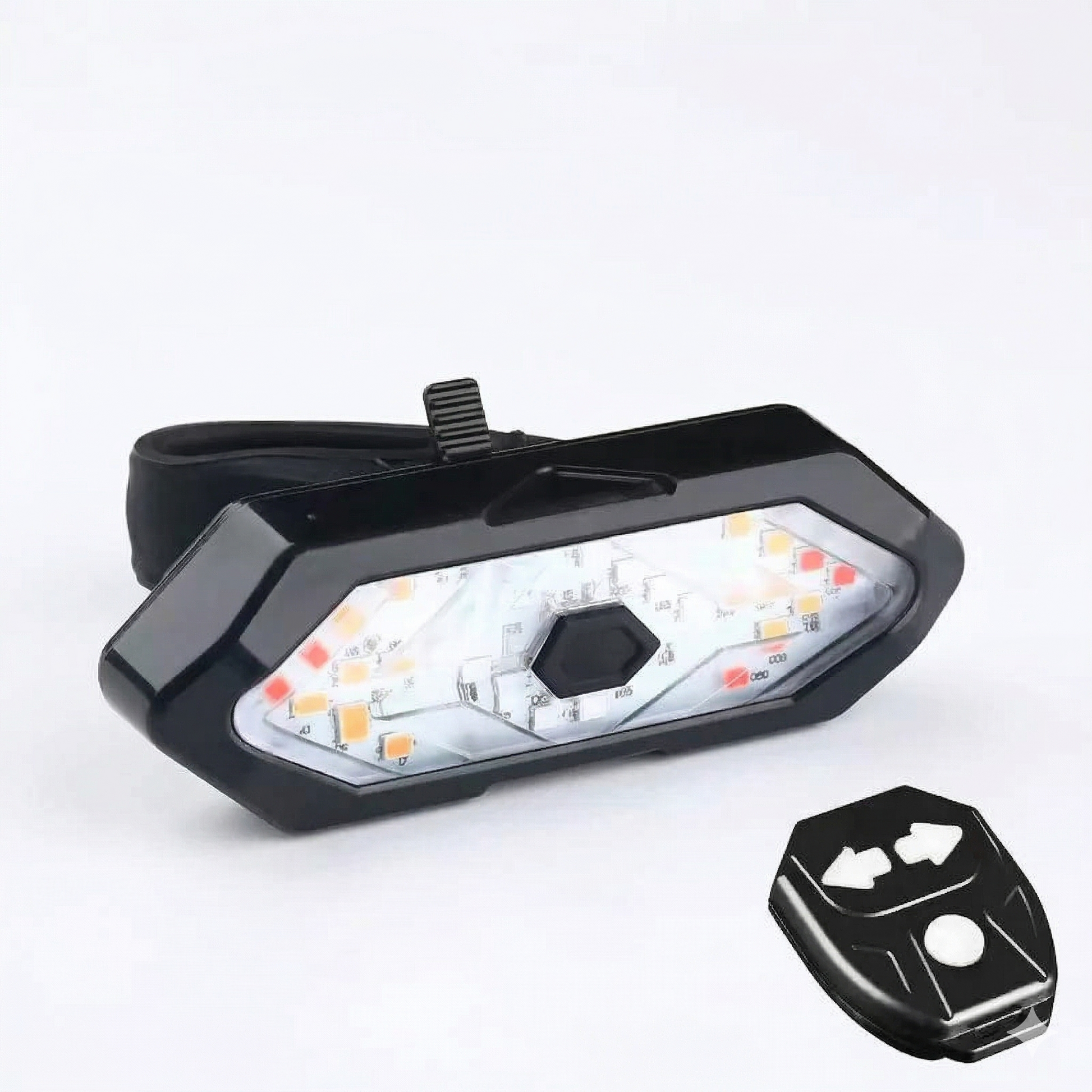Trådlös kontroll och maximal synlighet Gör varje cykeltur säkrare med denna innovativa baklampa. Med den smidiga, trådlösa fjärrkontrollen på styret kan du enkelt signalera höger- eller vänstersväng utan att släppa greppet. Lampan är utrustad med totalt 38 kraftfulla LED-dioder som erbjuder exceptionell ljusstyrka och flera anpassningsbara ljuslägen. Detta garanterar att du syns tydligt i trafiken och kan anpassa belysningen efter aktuella väder- och ljusförhållanden, både dag och natt.