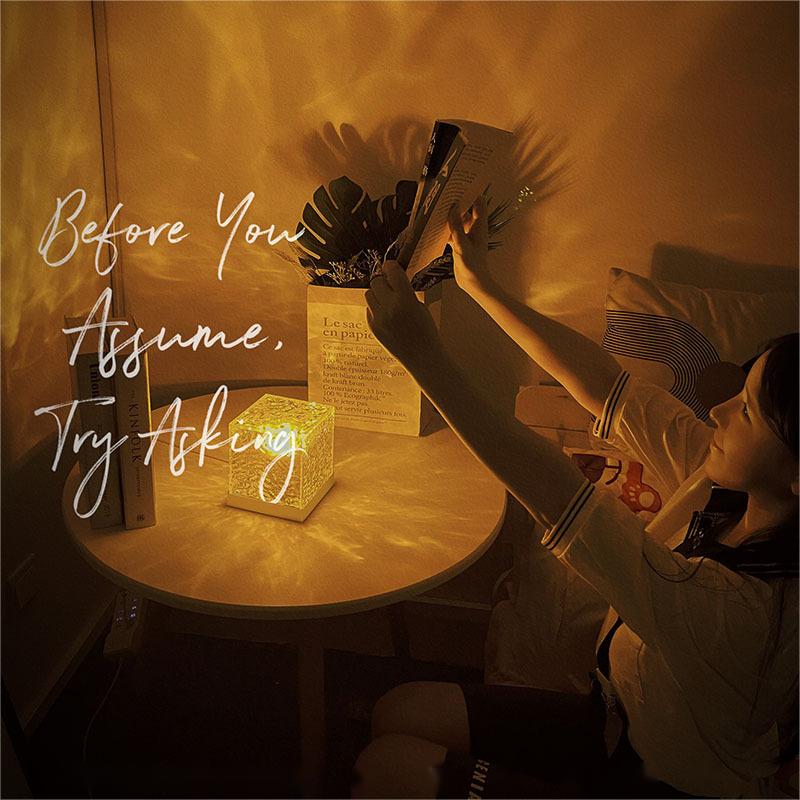 Den unika vågstrukturen och den inbyggda rotationen gör att ljuset som reflekteras på väggen liknar ett mjukt, porlande vattenflöde. Det skapar omedelbart en otroligt varm och romantisk känsla i ditt sovrum eller vardagsrum, och den lugnande effekten hjälper dig att slappna av och somna lättare.